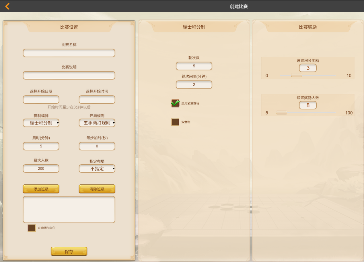 可以按班级自动导入参赛学生,也可以在校内自由报名参赛。
